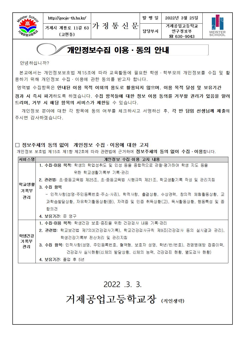 2022 개인정보 수집이용제공 일괄 동의서 가정통신문.hwp