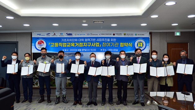 거제시는 지난 27일 고등직업교육거점지구 사업(HiVE) 공모 신청을 위해 산·학·관 거버넌스 협약을 체결했다. 교육부에서 주관하는 HiVE 사업은 지역소멸 및 학력인구 감소와 청년의 눈높이 일자리 부족 등에 대처하기 위한 전문대학-지자체(지역사회) 상생 공동협력체제 구축사업으로, 공모 선정 시 3년 간 국비 40억5000만 원과 시비 4억5000만 원으로 총 45억 원이 투입될 예정이다. 이에 거제시와 거제대학교는 컨소시엄을 구성해 예비신청서를 제출했고, 지역사회와 연계·협력·상생을 위해 지역의 산·학·관13개 기관이 이번 협약을 체결하여 고등직업교육혁신위원회를 구성, 사업 선정을 위한 발판을 마련했다. 이번 협약식은 변광용 시장과 허정석 거제대학교총장을 비롯해 거제해양관광개발공사, 거제상공회의소, 대우조선해양(주)협력사협의회, 삼성중공업(주)협력사협의회, 거제조선업희망센터, 거제고용복지플러스센터, 거제시사회적공동체지원센터, 거제교육지원청, 거제공업고등학교, 거제여자상업고등학교, 경남산업고등학교에서 참여했다. 참여 기관은 ▲지역특화분야 설정 및 교육과정 개편을 통한 인재 양성 ▲지역사회 평생직업교육 고도화 ▲지역특화분야 인재의 지역사회 정주 여건 마련 ▲지역 산업계 연계 취업지원 등으로 입학-교육-취업-정주로 이어지는 선순환 구조 창출에 상호 협력할 것을 상호 약속했다. 변광용 시장은 “고등직업교육거점지구 사업이 지역의 중장기 발전목표에 부합하는 특화 분야를 선정하고 그에 맞는 교육체계를 수립할 수 있도록 지역사회 및 거제대학교와 긴밀한 협력체제를 유지하겠다”며 “오늘 체결한 산·학·관 13개 기관의 협약이 지역 경쟁력 강화와 고등직업교육 혁신에 이바지 하는 계기가 되길 바라며, 생애 전주기 평생직업교육 활성화와 주력산업 맞춤형 인력양성을 위한 교육에도 지원을 아끼지 않겠다”고 말했다.
