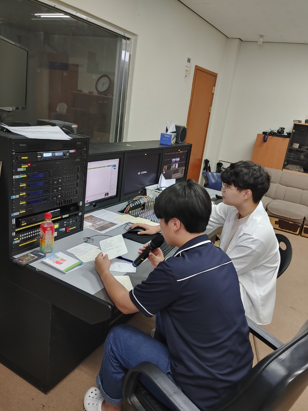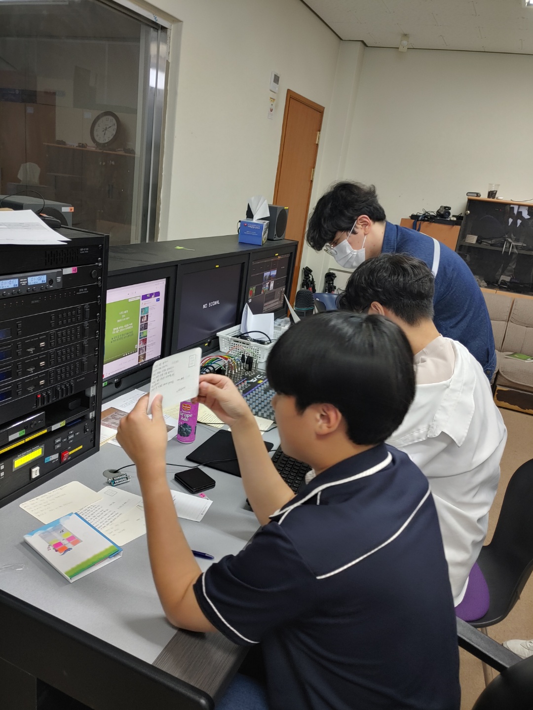 사진은~ 방송부에서 벼리동아리가 뽑은 미담을 방송하는 사진입니다.