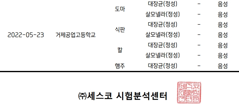 2022년 학교급식 미생물검사결과 안내