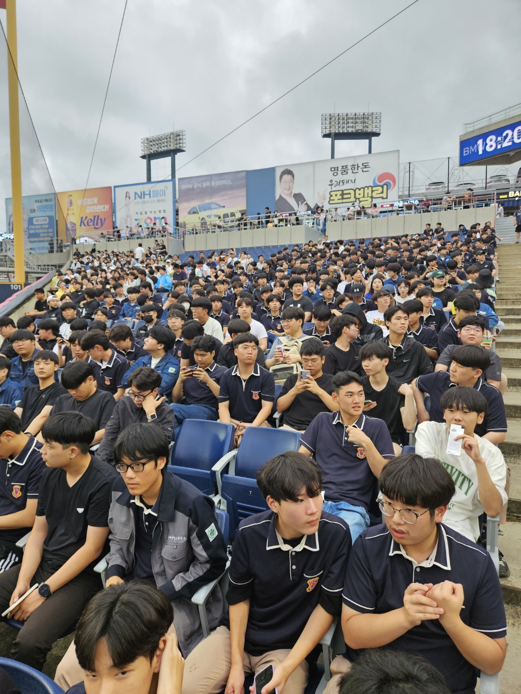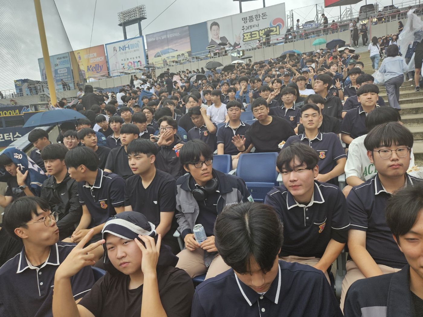 니다. 일과 후 학생들과 교직원들이 함께 야구 경기를 관람하며 일상에서 벗어나 즐거운 활력을 얻는 시간을 가졌습니다.