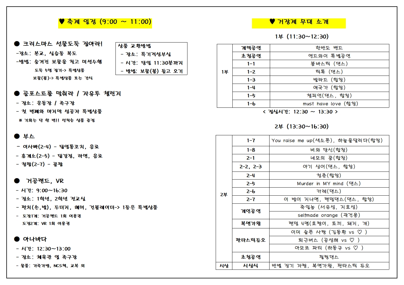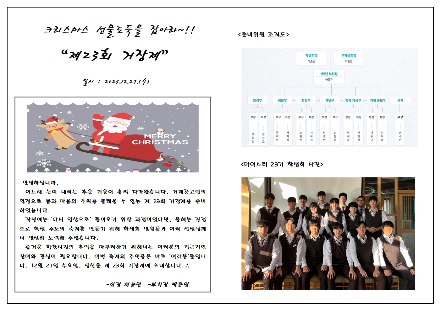 12월 27일 수요일에 학생회에서 주관하여 열린 거장제 축제를 진행하였습니다.