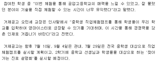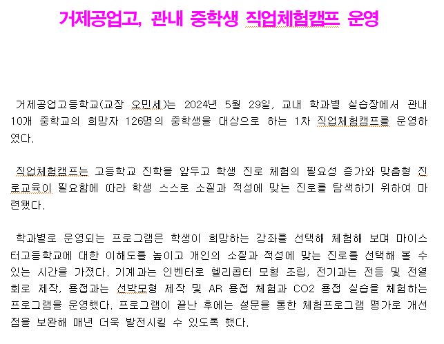 [보도자료] 2024. 관내 중학생 직업체험캠프 운영 보도자료