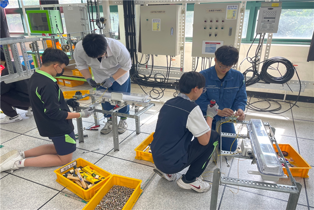 5. 전등 및 전열회로 제작 실습에 참가한 학생들.png