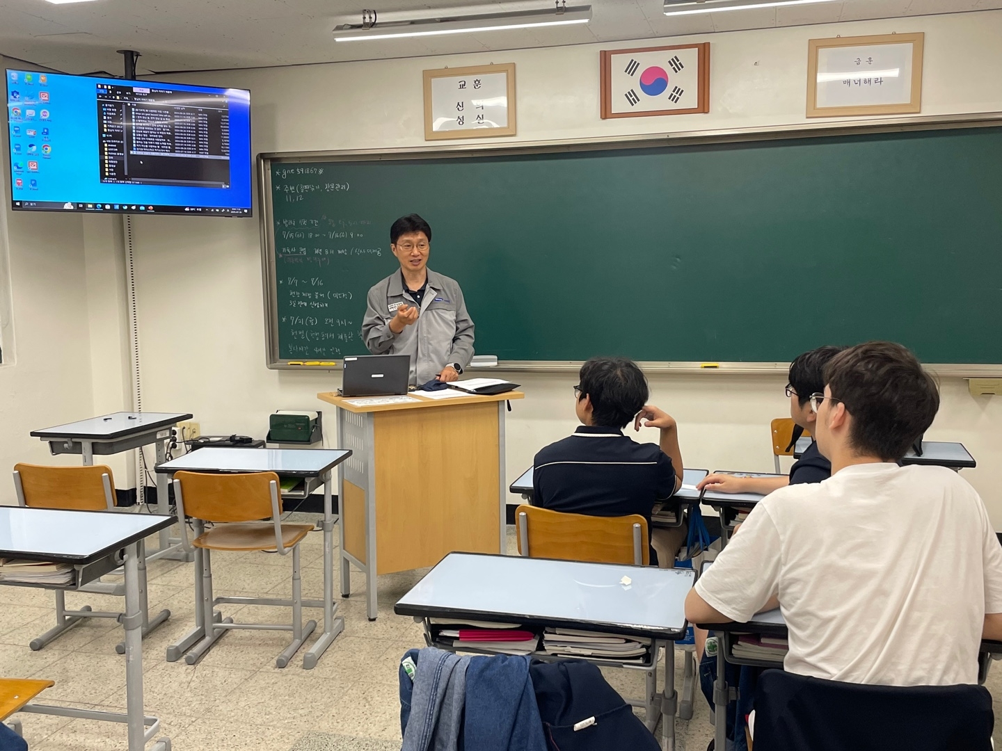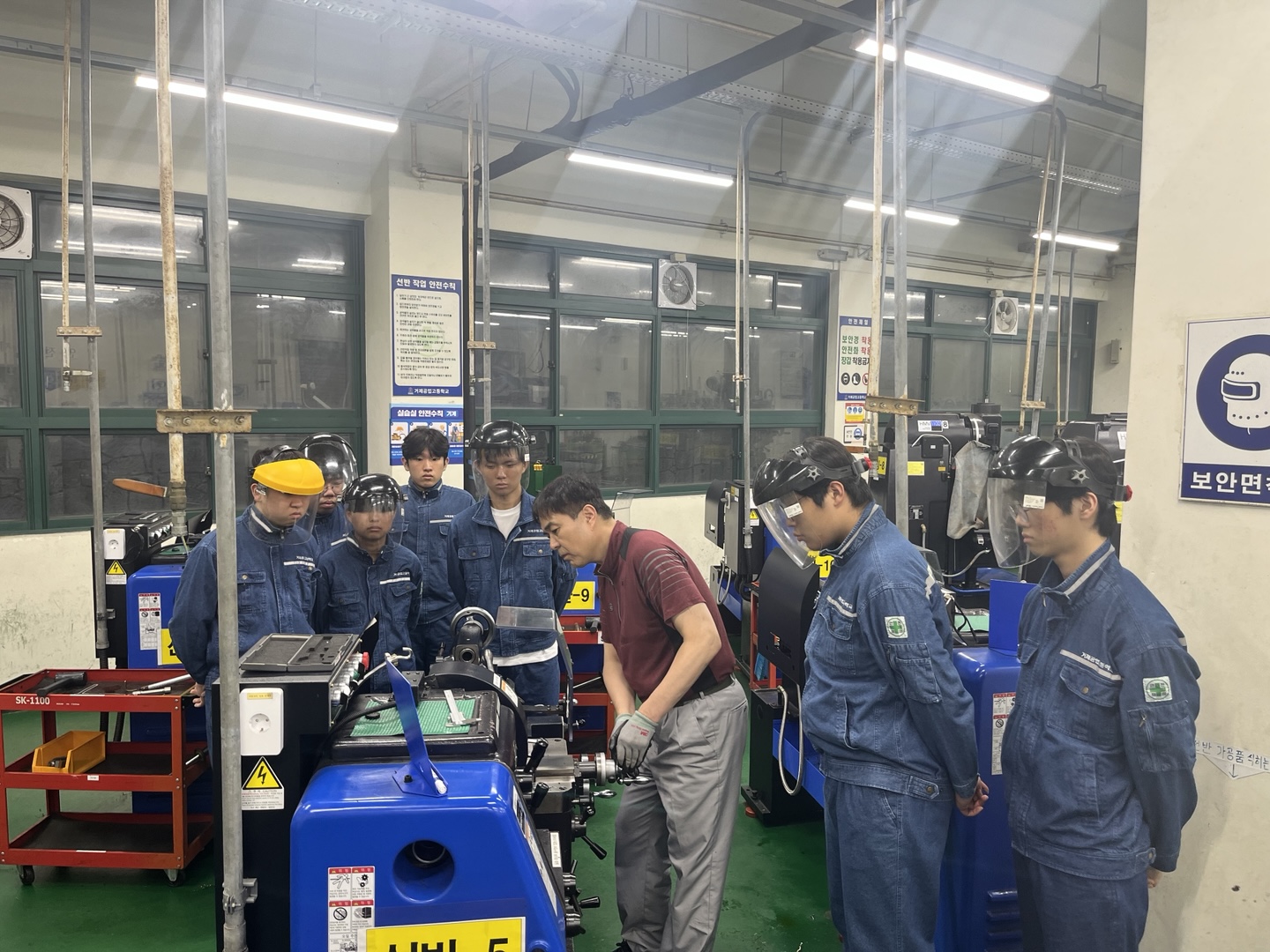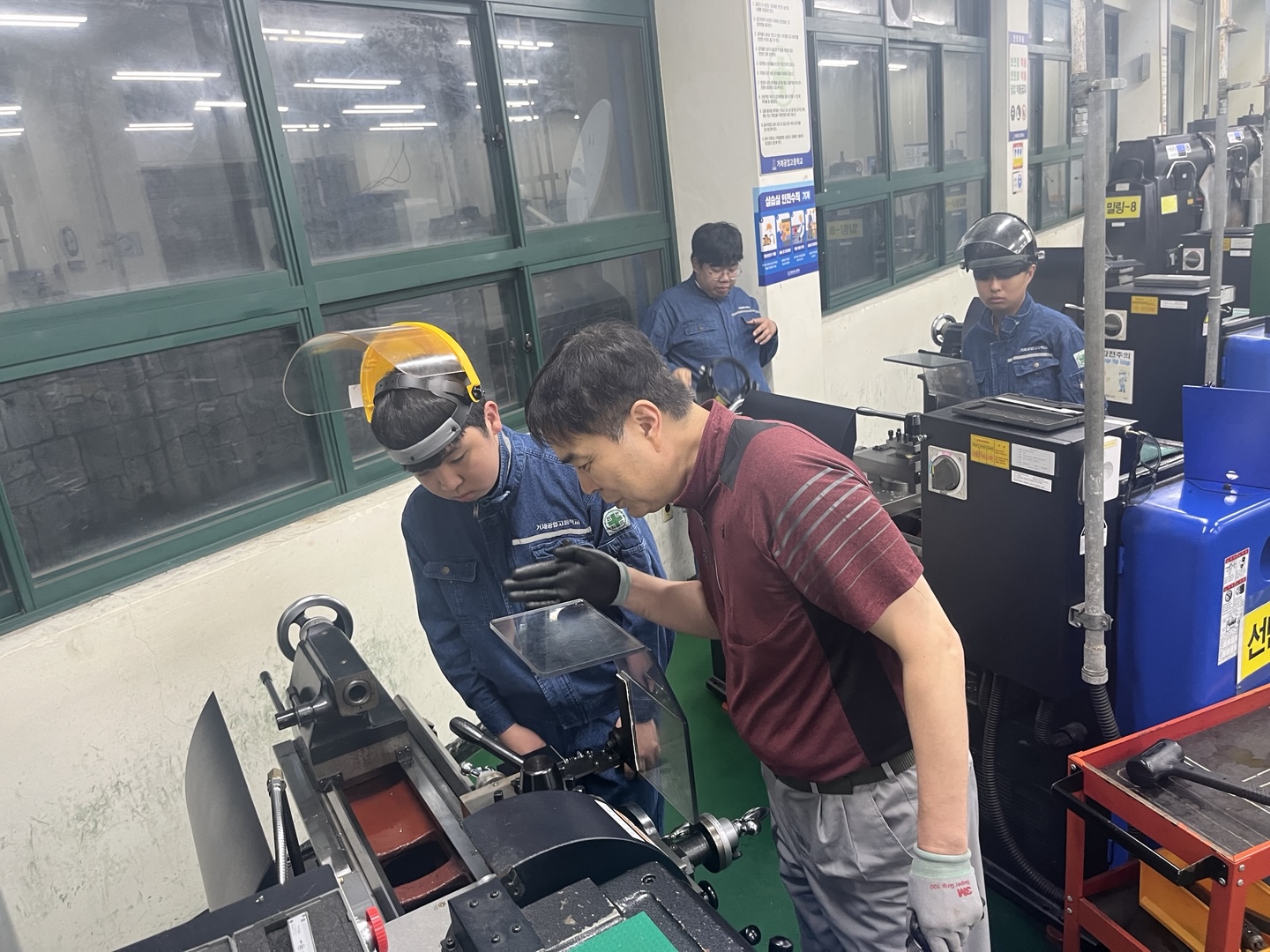 2025학년도 명장 멘토링 기술전수 프로그램(4차)을 아래와 같이 실시하였습니다. 1. 일시: 2025. 7. 16.(수) 18:20~20:00 2. 장소 가. 1-1반: 거제공업고 기계과 실습실 나. 1-2반, 1-4반, 1-7반, 1-8반: 교실 3. 강사: 삼성중공업 명장 멘토링 명예 교사 7명 4. 대상: 거제공업고 1학년 희망 학생 5. 강의 내용 가. 1-1반: 범용 선반 실습 나. 1-2반, 1-4반, 1-7반, 1-8반: 취업 방향 상담 및 면접 지도 ※ 참고사항 대한민국 명장이란 산업현장에서 최고 수준의 숙련기술을 보유한 기술자로서 22개 분야 96개 직종의 산업현장에 장기간 종사하며 숙련기술 발전 및 숙련기술자의 지위 향상에 크게 공헌한 사람을 대상으로 숙련기술장려법 제11조 규정에 의해 대통령 명의로 선정된 사람을 말합니다. 거제공업고등학교는 거제 지역 삼성중공업에 근무하는 선박, 용접, 플랜트,기계가공 분야 대한민국명장, 경상남도명장, 국가품질명장, 중공업 명장 분들께서 학생들의 숙련기술을 위해 교육을 해주고 계십니다.