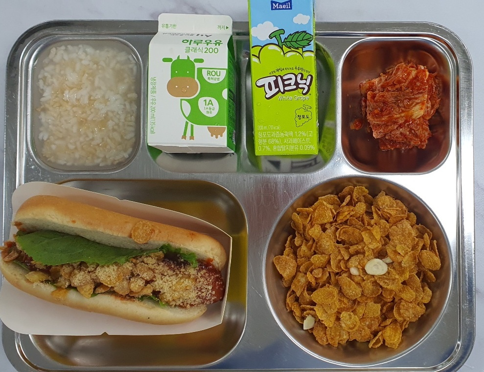 숭늉&배추김치(조)(9)아메리칸핫도그(1.2.5.6.10.18)우유(2)아몬드시리얼(5.6)청포도주스(13)