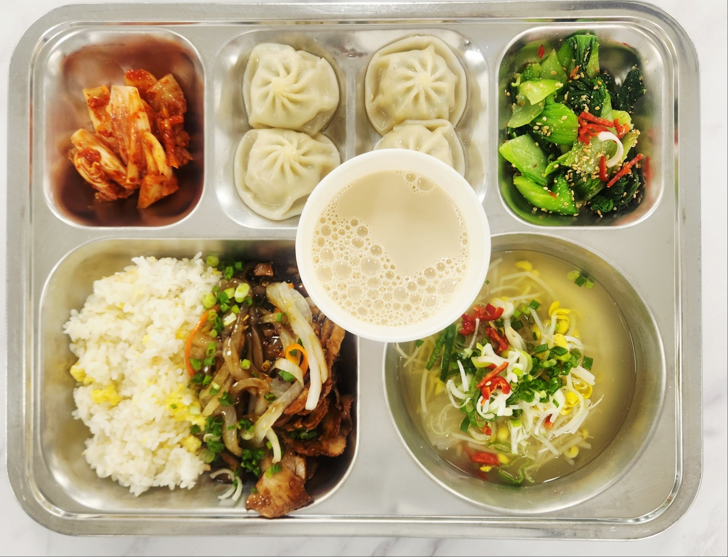 석식 돈파육덮밥(1.5.6.10.13) -맑은콩나물국(5.6.9) -샤오롱바오(1.5.6.10.16.18) 배추김치(자율)(9) 청경채나물(자율) -흑당버블티라떼(2.13)