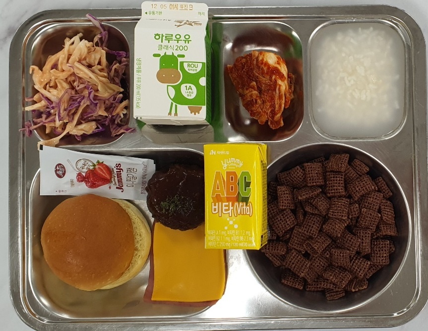 군대리아(셀프)(1.2.5.6.10.12.13.15.16)숭늉&깍두기(조)(9)-양배추샐러드&케요네즈(자율)(1.5.12)-우유(2)-초코시리얼(2.5.6)abc주스(13)