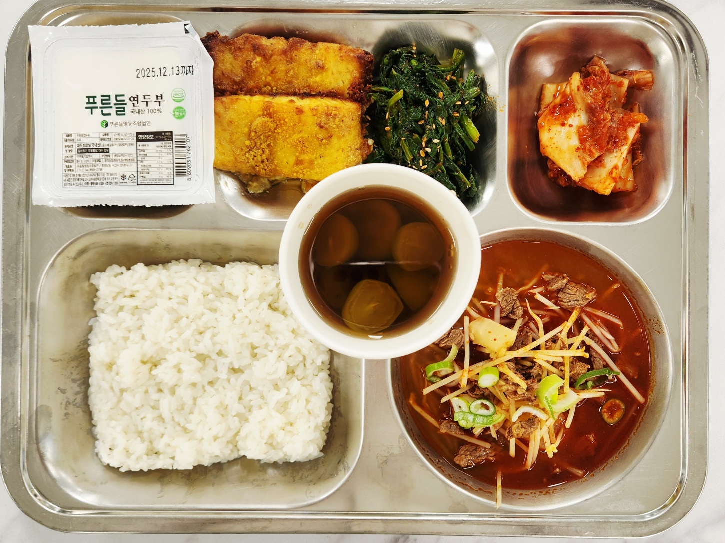 [조식] 친환경쌀밥 김치콩나물국(5.6.9) 당면불고기(5.6.10.13) 달걀말이(1.12) 깍두기(9) 저당요구르트(2)