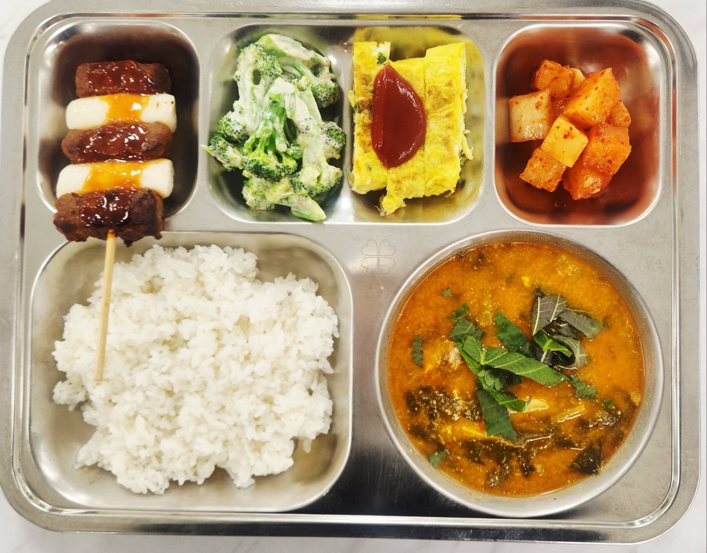 [석식] 친환경쌀밥 뼈없는감자탕(5.6.9.10) 달걀말이(1.12) 소떡갈떡꼬치(1.2.5.6.10.12.13) 브로콜리참깨소스무침(1.5.6.13) 깍두기(9)
